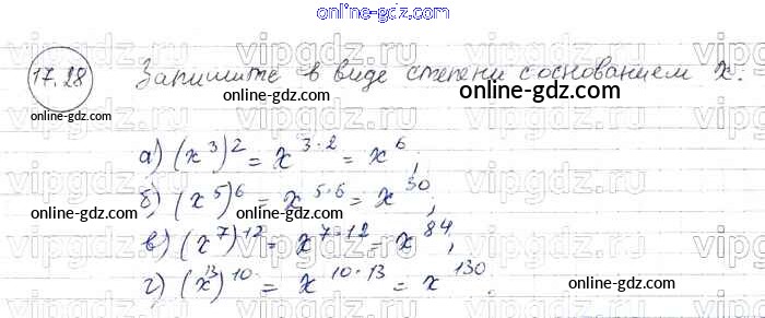 Готовые домашние задания по Алгебре за 7 класс Задачник Мордкович, Александрова Базовый уровень 2013 - § 17. Свойства степени с натуральными показателями Глава 4 28