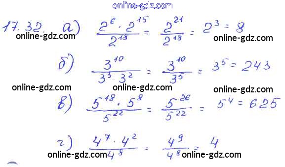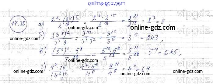 Готовые домашние задания по Алгебре за 7 класс Задачник Мордкович, Александрова Базовый уровень 2013 - § 17. Свойства степени с натуральными показателями Глава 4 32