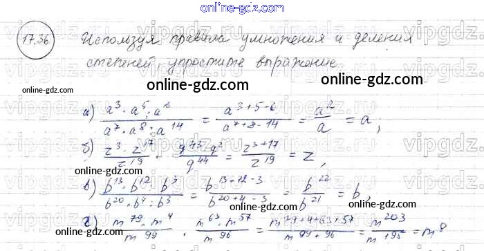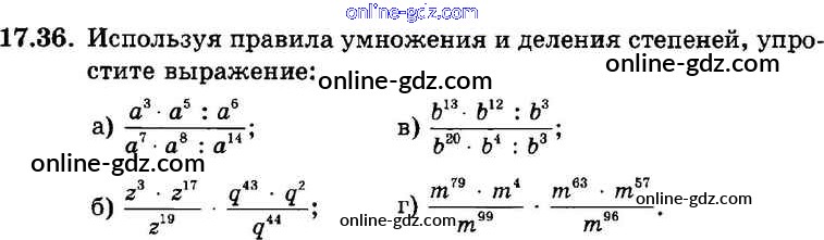 Готовые домашние задания по Алгебре за 7 класс Задачник Мордкович, Александрова Базовый уровень 2013 - § 17. Свойства степени с натуральными показателями Глава 4 36