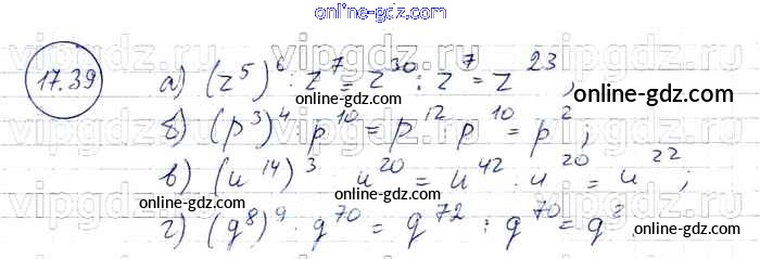 Готовые домашние задания по Алгебре за 7 класс Задачник Мордкович, Александрова Базовый уровень 2013 - § 17. Свойства степени с натуральными показателями Глава 4 39