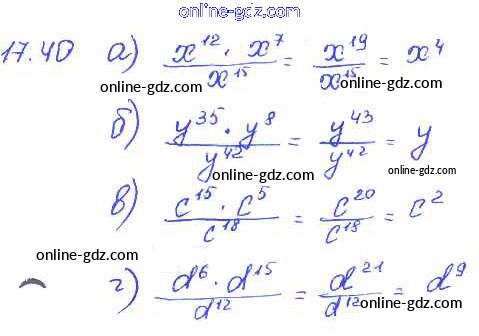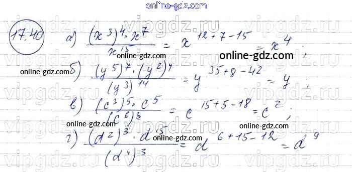 Готовые домашние задания по Алгебре за 7 класс Задачник Мордкович, Александрова Базовый уровень 2013 - § 17. Свойства степени с натуральными показателями Глава 4 40