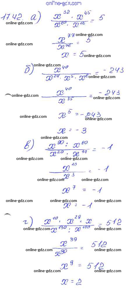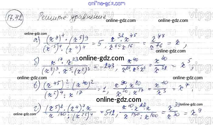 Готовые домашние задания по Алгебре за 7 класс Задачник Мордкович, Александрова Базовый уровень 2013 - § 17. Свойства степени с натуральными показателями Глава 4 42