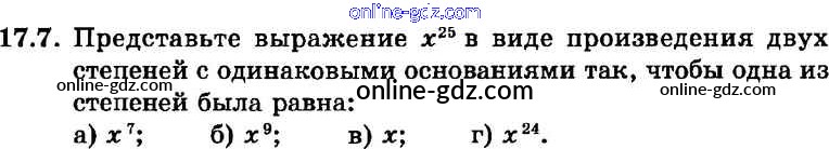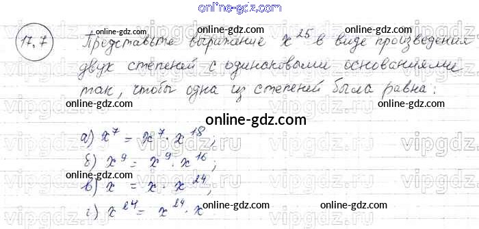 Готовые домашние задания по Алгебре за 7 класс Задачник Мордкович, Александрова Базовый уровень 2013 - § 17. Свойства степени с натуральными показателями Глава 4 7