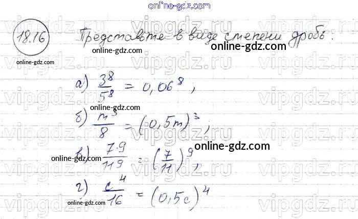 Готовые домашние задания по Алгебре за 7 класс Задачник Мордкович, Александрова Базовый уровень 2013 - § 18. Умножение и деление степеней с одинаковыми показателями Глава 4 16