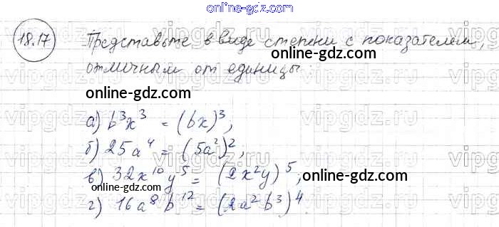 Готовые домашние задания по Алгебре за 7 класс Задачник Мордкович, Александрова Базовый уровень 2013 - § 18. Умножение и деление степеней с одинаковыми показателями Глава 4 17
