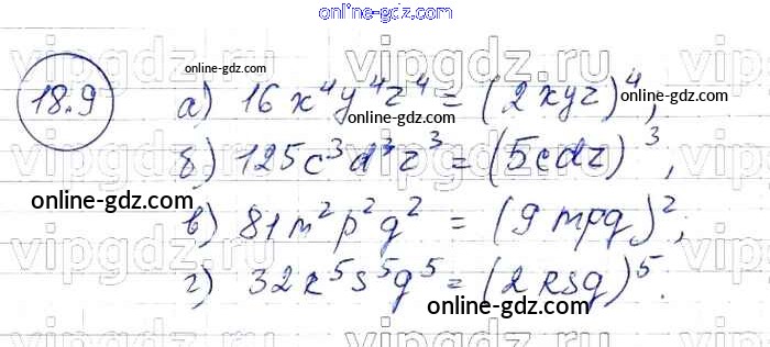 Готовые домашние задания по Алгебре за 7 класс Задачник Мордкович, Александрова Базовый уровень 2013 - § 18. Умножение и деление степеней с одинаковыми показателями Глава 4 9