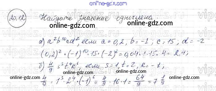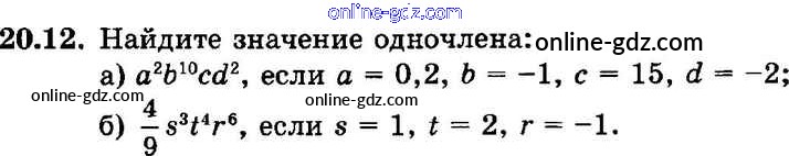 Готовые домашние задания по Алгебре за 7 класс Задачник Мордкович, Александрова Базовый уровень 2013 - § 20. Понятие одночлена. стандартный вид одночлена Глава 5 12