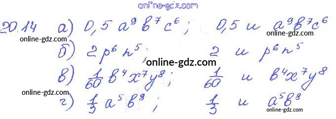 Готовые домашние задания по Алгебре за 7 класс Задачник Мордкович, Александрова Базовый уровень 2013 - § 20. Понятие одночлена. стандартный вид одночлена Глава 5 14