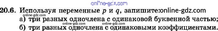 Готовые домашние задания по Алгебре за 7 класс Задачник Мордкович, Александрова Базовый уровень 2013 - § 20. Понятие одночлена. стандартный вид одночлена Глава 5 6
