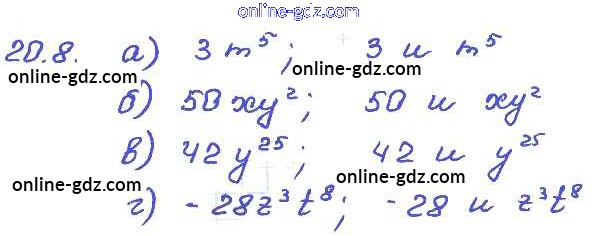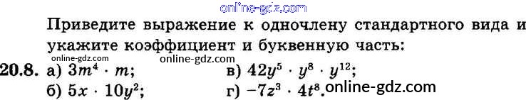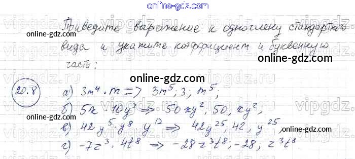 Готовые домашние задания по Алгебре за 7 класс Задачник Мордкович, Александрова Базовый уровень 2013 - § 20. Понятие одночлена. стандартный вид одночлена Глава 5 8