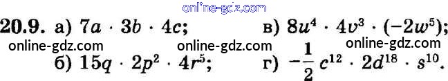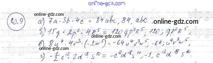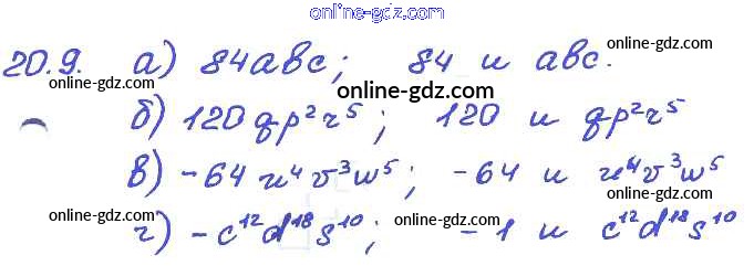 Готовые домашние задания по Алгебре за 7 класс Задачник Мордкович, Александрова Базовый уровень 2013 - § 20. Понятие одночлена. стандартный вид одночлена Глава 5 9
