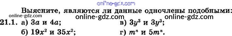 Готовые домашние задания по Алгебре за 7 класс Задачник Мордкович, Александрова Базовый уровень 2013 - § 21. Сложение и вычитание одочленов Глава 5 1