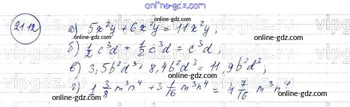 Готовые домашние задания по Алгебре за 7 класс Задачник Мордкович, Александрова Базовый уровень 2013 - § 21. Сложение и вычитание одочленов Глава 5 12