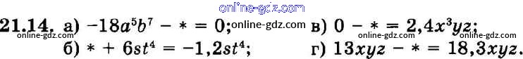 Готовые домашние задания по Алгебре за 7 класс Задачник Мордкович, Александрова Базовый уровень 2013 - § 21. Сложение и вычитание одочленов Глава 5 14