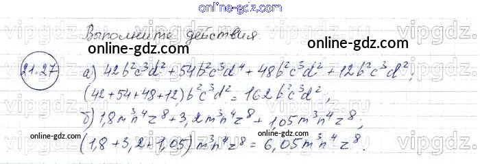 Готовые домашние задания по Алгебре за 7 класс Задачник Мордкович, Александрова Базовый уровень 2013 - § 21. Сложение и вычитание одочленов Глава 5 27