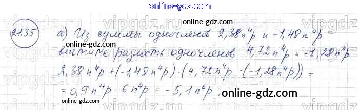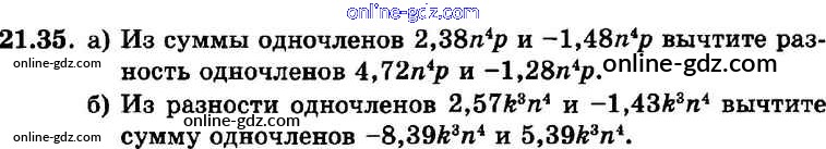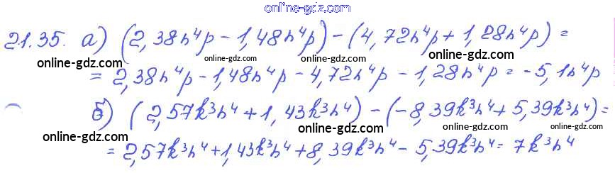 Готовые домашние задания по Алгебре за 7 класс Задачник Мордкович, Александрова Базовый уровень 2013 - § 21. Сложение и вычитание одочленов Глава 5 35