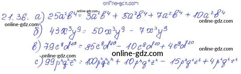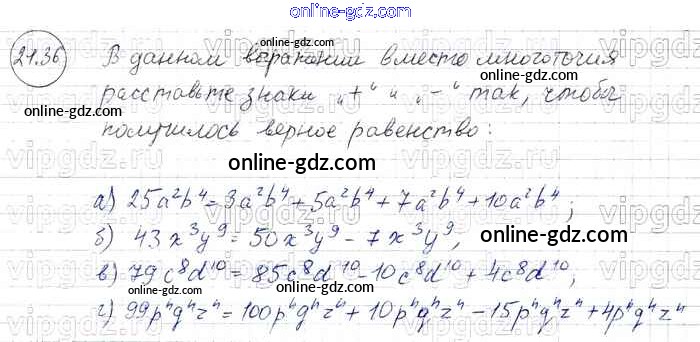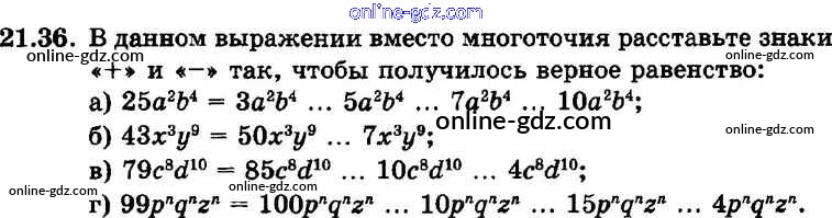 Готовые домашние задания по Алгебре за 7 класс Задачник Мордкович, Александрова Базовый уровень 2013 - § 21. Сложение и вычитание одочленов Глава 5 36