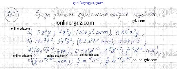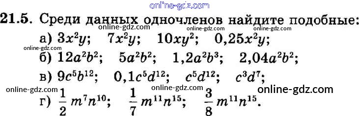 Готовые домашние задания по Алгебре за 7 класс Задачник Мордкович, Александрова Базовый уровень 2013 - § 21. Сложение и вычитание одочленов Глава 5 5