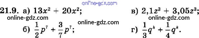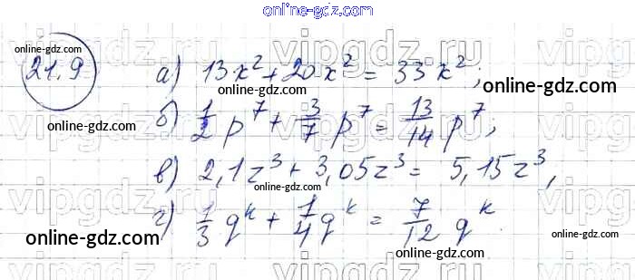 Готовые домашние задания по Алгебре за 7 класс Задачник Мордкович, Александрова Базовый уровень 2013 - § 21. Сложение и вычитание одочленов Глава 5 9