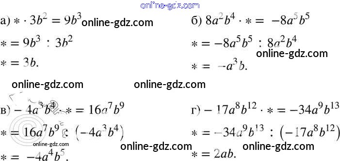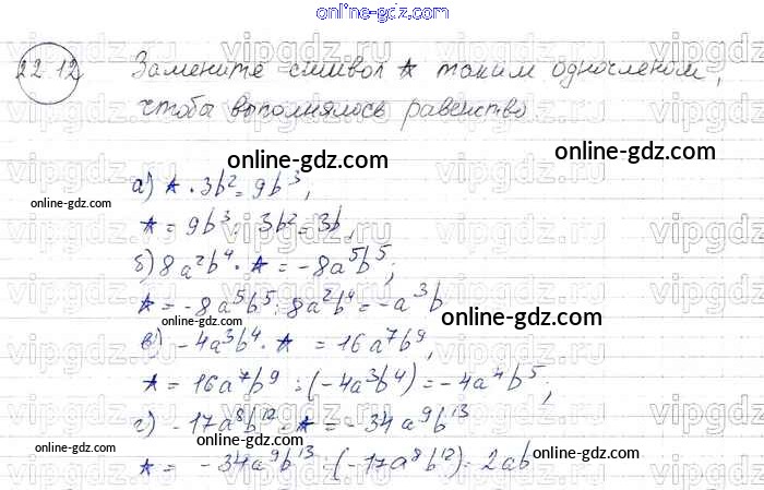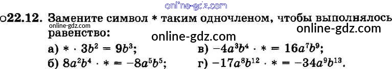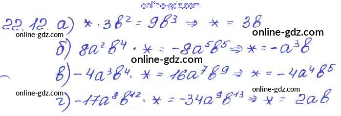Готовые домашние задания по Алгебре за 7 класс Задачник Мордкович, Александрова Базовый уровень 2013 - § 22. Умножение одночленов. Возведение одночлена в натуральную степень Глава 5 12