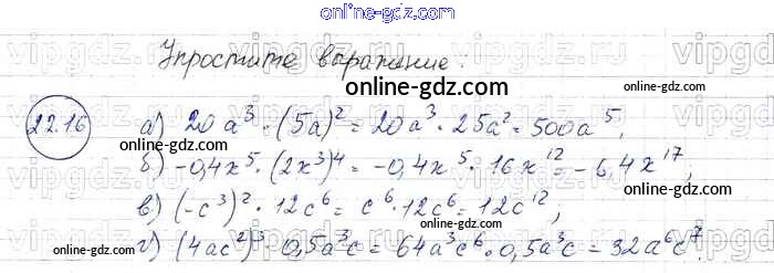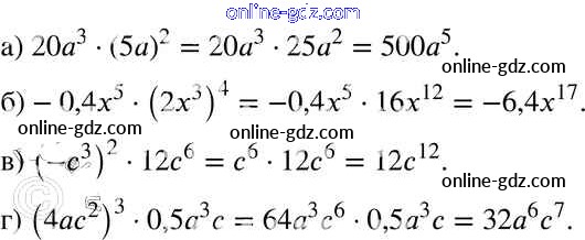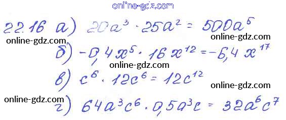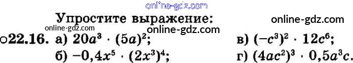 Готовые домашние задания по Алгебре за 7 класс Задачник Мордкович, Александрова Базовый уровень 2013 - § 22. Умножение одночленов. Возведение одночлена в натуральную степень Глава 5 16