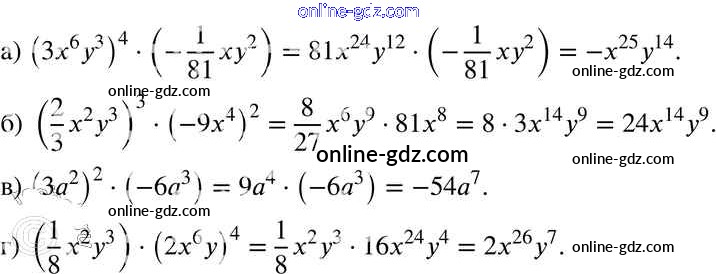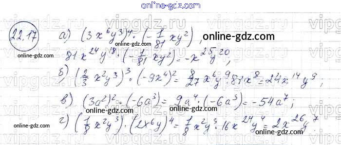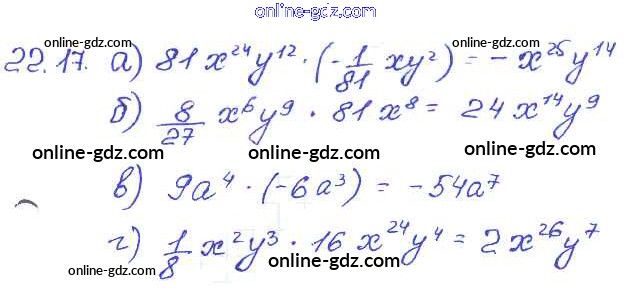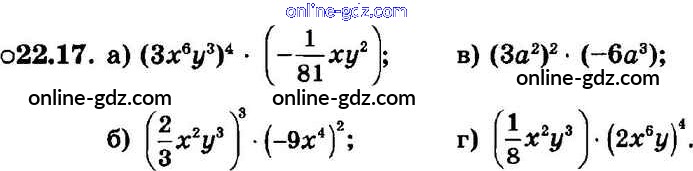 Готовые домашние задания по Алгебре за 7 класс Задачник Мордкович, Александрова Базовый уровень 2013 - § 22. Умножение одночленов. Возведение одночлена в натуральную степень Глава 5 17
