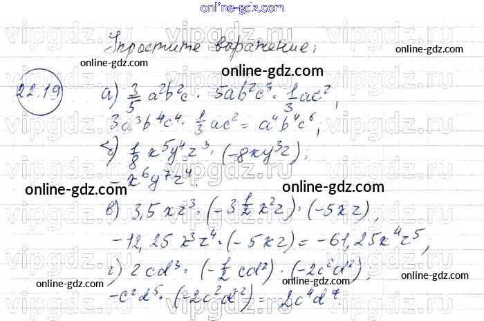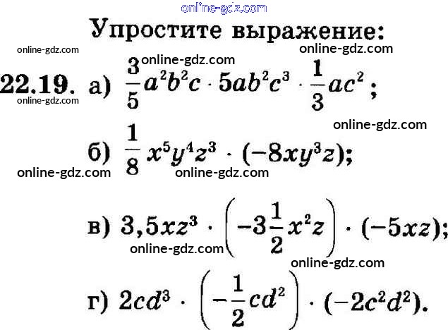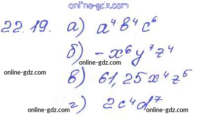 Готовые домашние задания по Алгебре за 7 класс Задачник Мордкович, Александрова Базовый уровень 2013 - § 22. Умножение одночленов. Возведение одночлена в натуральную степень Глава 5 19