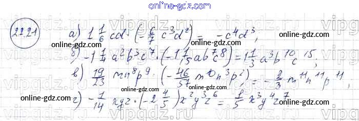 Готовые домашние задания по Алгебре за 7 класс Задачник Мордкович, Александрова Базовый уровень 2013 - § 22. Умножение одночленов. Возведение одночлена в натуральную степень Глава 5 21