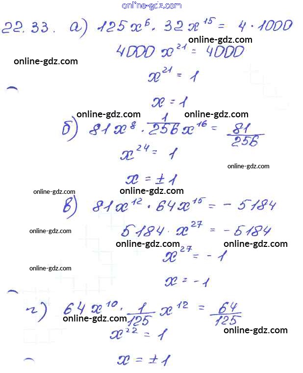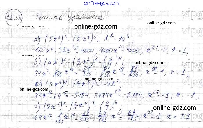 Готовые домашние задания по Алгебре за 7 класс Задачник Мордкович, Александрова Базовый уровень 2013 - § 22. Умножение одночленов. Возведение одночлена в натуральную степень Глава 5 33