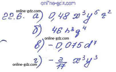 Готовые домашние задания по Алгебре за 7 класс Задачник Мордкович, Александрова Базовый уровень 2013 - § 22. Умножение одночленов. Возведение одночлена в натуральную степень Глава 5 6