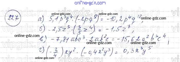 Готовые домашние задания по Алгебре за 7 класс Задачник Мордкович, Александрова Базовый уровень 2013 - § 22. Умножение одночленов. Возведение одночлена в натуральную степень Глава 5 7