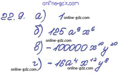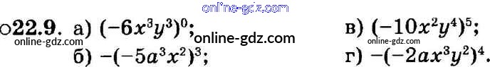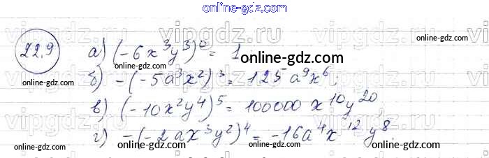 Готовые домашние задания по Алгебре за 7 класс Задачник Мордкович, Александрова Базовый уровень 2013 - § 22. Умножение одночленов. Возведение одночлена в натуральную степень Глава 5 9