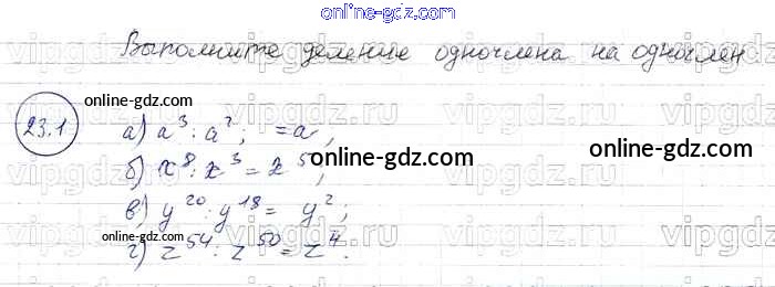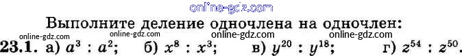 Готовые домашние задания по Алгебре за 7 класс Задачник Мордкович, Александрова Базовый уровень 2013 - § 23. Деление одночлена на одночлен Глава 5 1