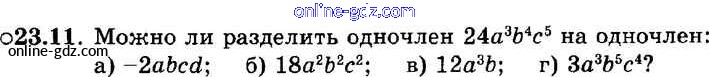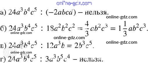 Готовые домашние задания по Алгебре за 7 класс Задачник Мордкович, Александрова Базовый уровень 2013 - § 23. Деление одночлена на одночлен Глава 5 11