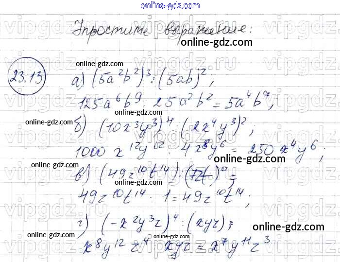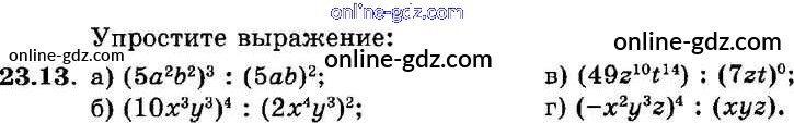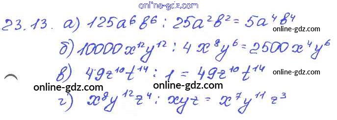 Готовые домашние задания по Алгебре за 7 класс Задачник Мордкович, Александрова Базовый уровень 2013 - § 23. Деление одночлена на одночлен Глава 5 13
