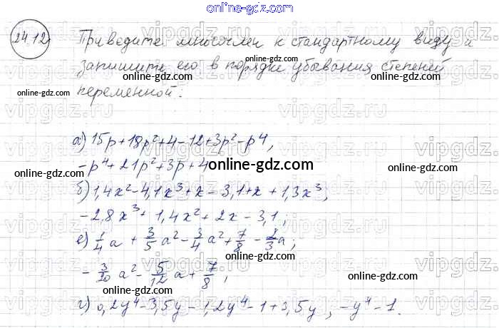 Готовые домашние задания по Алгебре за 7 класс Задачник Мордкович, Александрова Базовый уровень 2013 - § 24. Основные понятия Глава 6 12