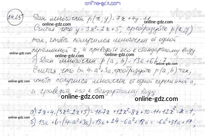Готовые домашние задания по Алгебре за 7 класс Задачник Мордкович, Александрова Базовый уровень 2013 - § 24. Основные понятия Глава 6 25