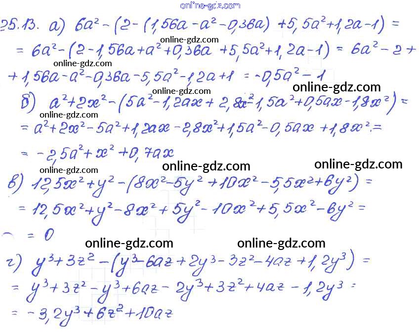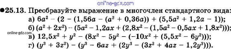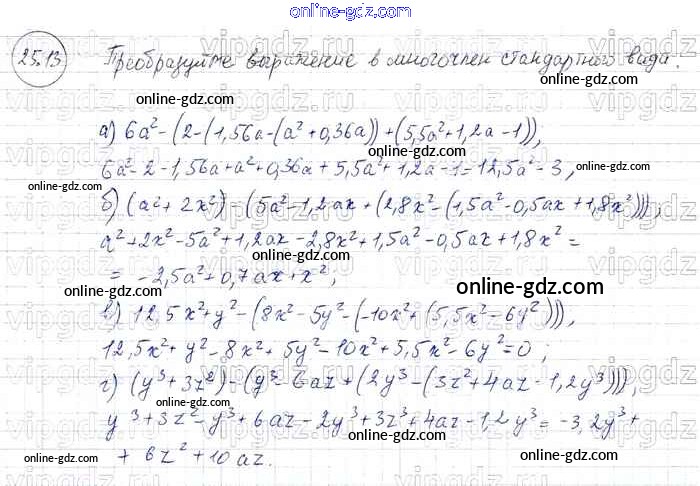 Готовые домашние задания по Алгебре за 7 класс Задачник Мордкович, Александрова Базовый уровень 2013 - § 25. Сложение и вычитание многочленов Глава 6 13