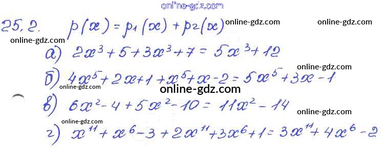 Готовые домашние задания по Алгебре за 7 класс Задачник Мордкович, Александрова Базовый уровень 2013 - § 25. Сложение и вычитание многочленов Глава 6 2