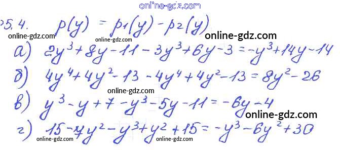 Готовые домашние задания по Алгебре за 7 класс Задачник Мордкович, Александрова Базовый уровень 2013 - § 25. Сложение и вычитание многочленов Глава 6 4