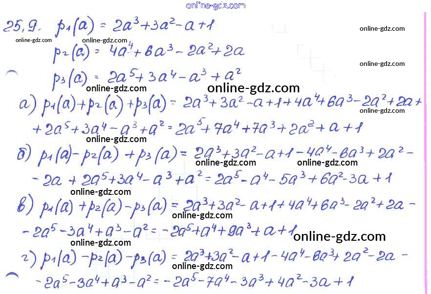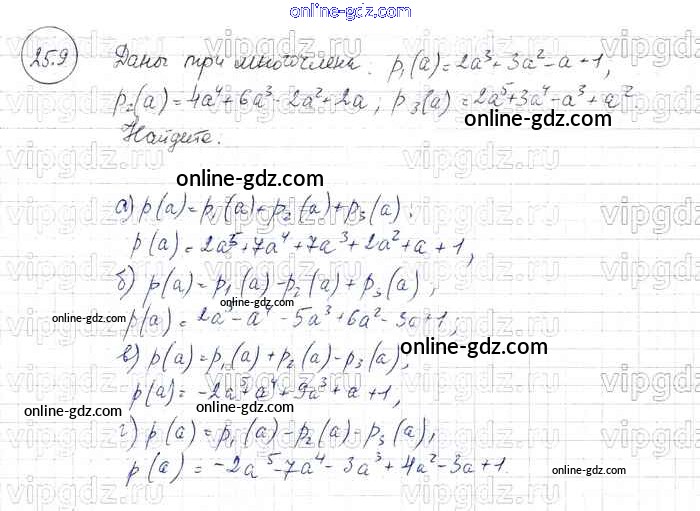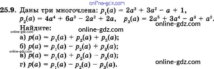 Готовые домашние задания по Алгебре за 7 класс Задачник Мордкович, Александрова Базовый уровень 2013 - § 25. Сложение и вычитание многочленов Глава 6 9