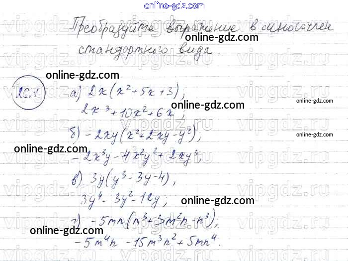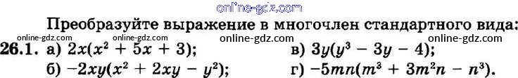Готовые домашние задания по Алгебре за 7 класс Задачник Мордкович, Александрова Базовый уровень 2013 - § 26. Умножение многочлена на одночлен Глава 6 1