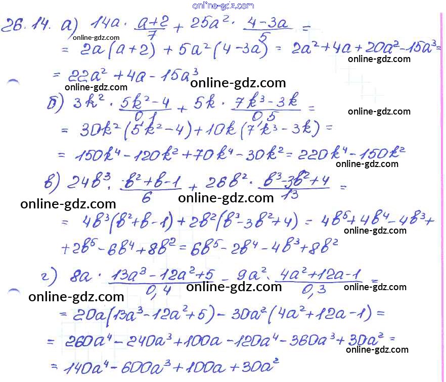 Готовые домашние задания по Алгебре за 7 класс Задачник Мордкович, Александрова Базовый уровень 2013 - § 26. Умножение многочлена на одночлен Глава 6 14