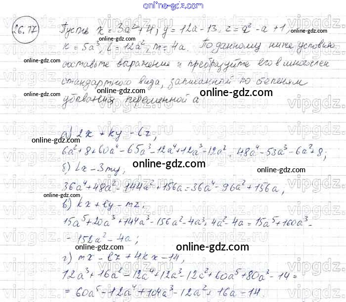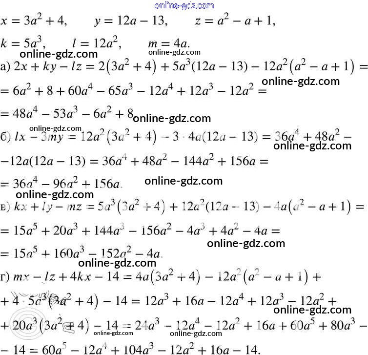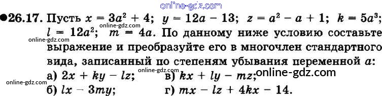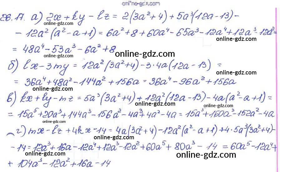 Готовые домашние задания по Алгебре за 7 класс Задачник Мордкович, Александрова Базовый уровень 2013 - § 26. Умножение многочлена на одночлен Глава 6 17