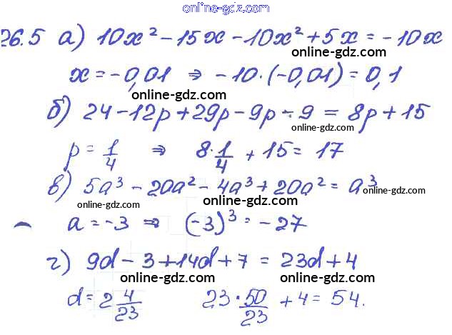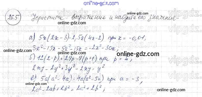 Готовые домашние задания по Алгебре за 7 класс Задачник Мордкович, Александрова Базовый уровень 2013 - § 26. Умножение многочлена на одночлен Глава 6 5