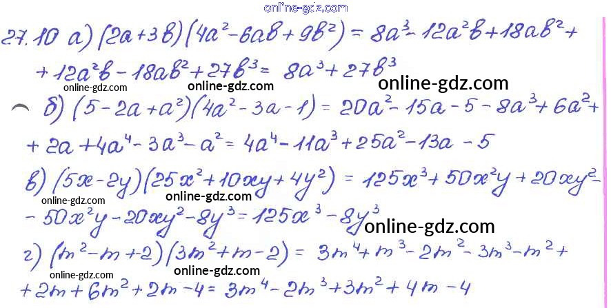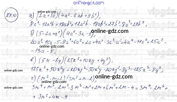 Готовые домашние задания по Алгебре за 7 класс Задачник Мордкович, Александрова Базовый уровень 2013 - § 27. Умножение многочлена на многочлен Глава 6 10