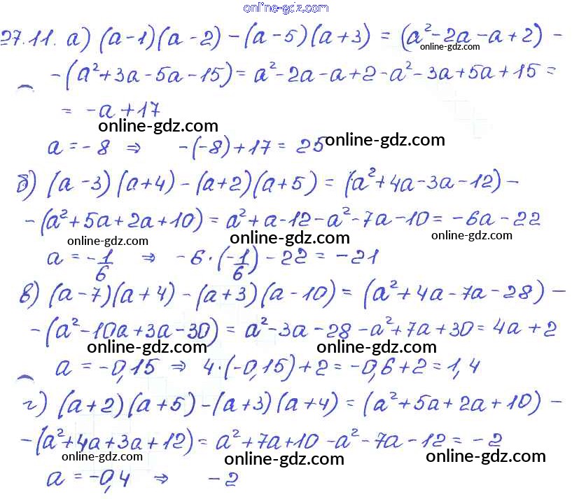 Готовые домашние задания по Алгебре за 7 класс Задачник Мордкович, Александрова Базовый уровень 2013 - § 27. Умножение многочлена на многочлен Глава 6 11