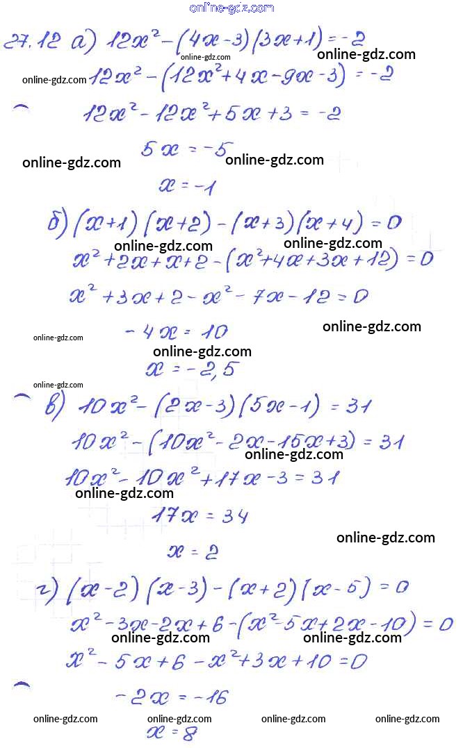 Готовые домашние задания по Алгебре за 7 класс Задачник Мордкович, Александрова Базовый уровень 2013 - § 27. Умножение многочлена на многочлен Глава 6 12
