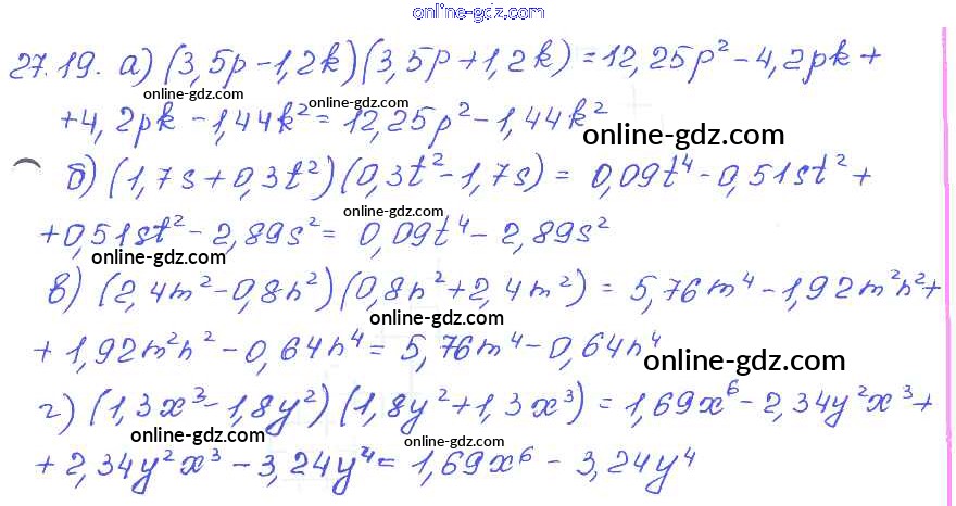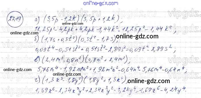 Готовые домашние задания по Алгебре за 7 класс Задачник Мордкович, Александрова Базовый уровень 2013 - § 27. Умножение многочлена на многочлен Глава 6 19