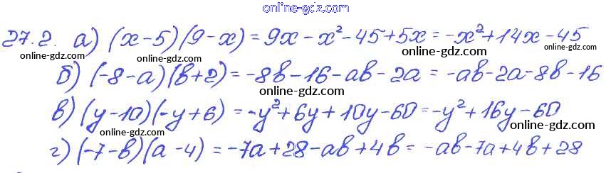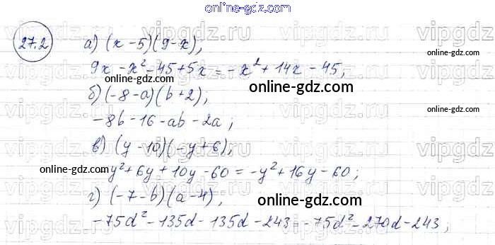 Готовые домашние задания по Алгебре за 7 класс Задачник Мордкович, Александрова Базовый уровень 2013 - § 27. Умножение многочлена на многочлен Глава 6 2